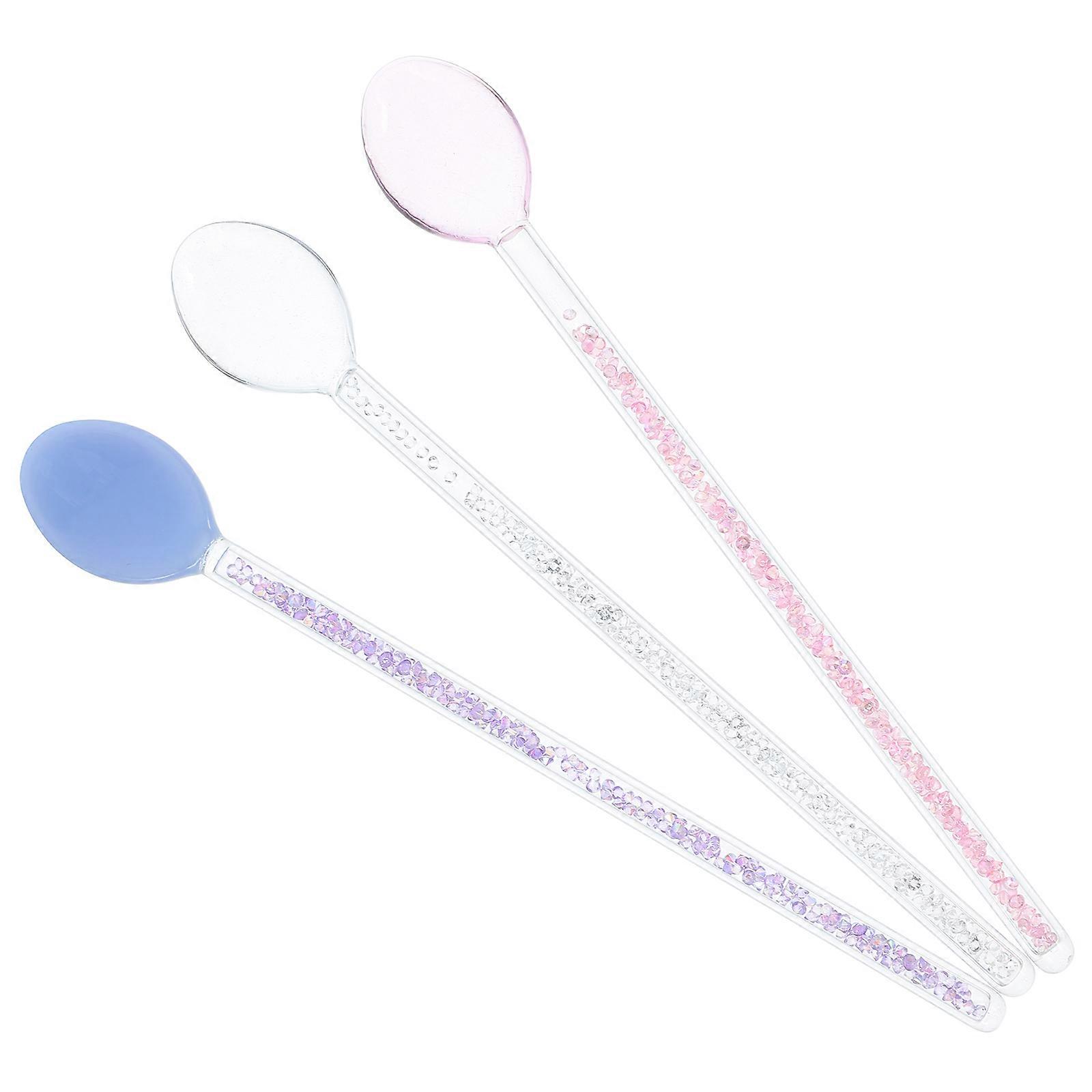 Crystal Glass Decorative Teaspoons for Kitchen Use Beverage Preparation Assorted Color Serving 3Pcs