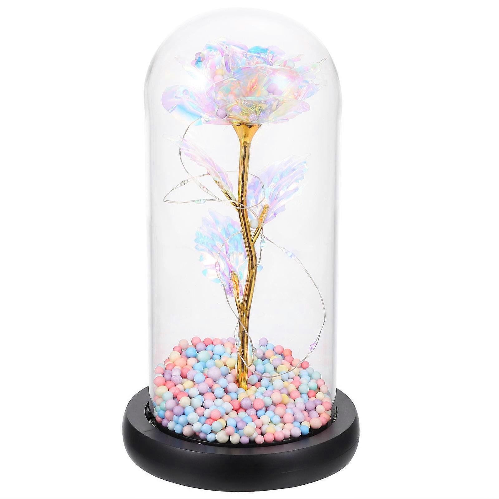 Artificial Flower Glass Dome for Decor Valentine's Day Gift with LED Light 2Pcs