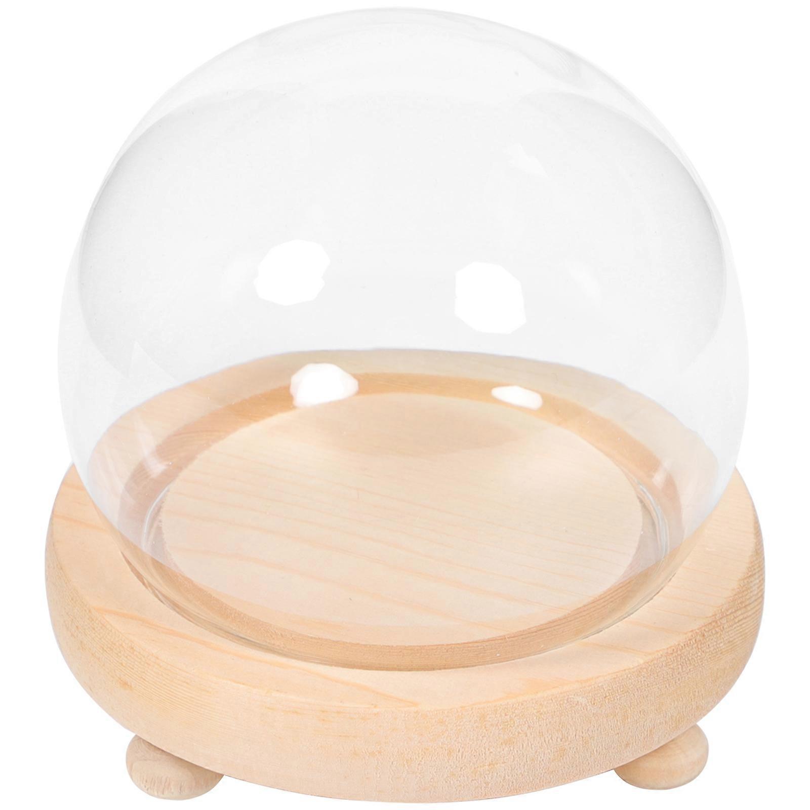 Eternal Flower Glass Dome for Decoration 2Sets Flower Cover with Wooden Base