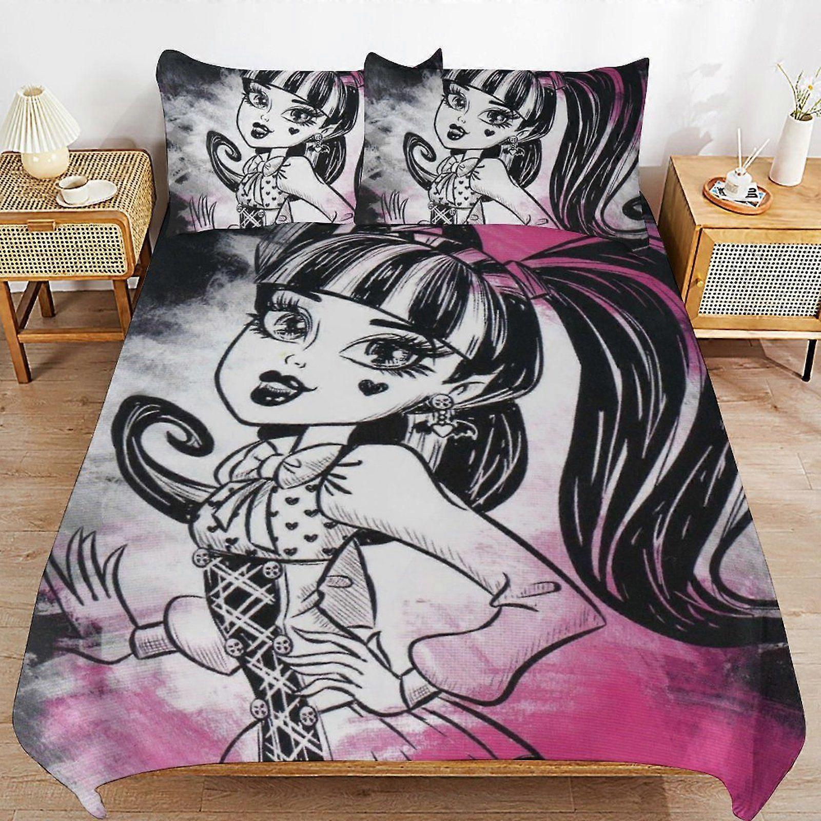 d45 Teen Monster High Practical Zip Function Smooth Bedding Surface Soft Layer Duvet Cover Sets for Rest Night b45
