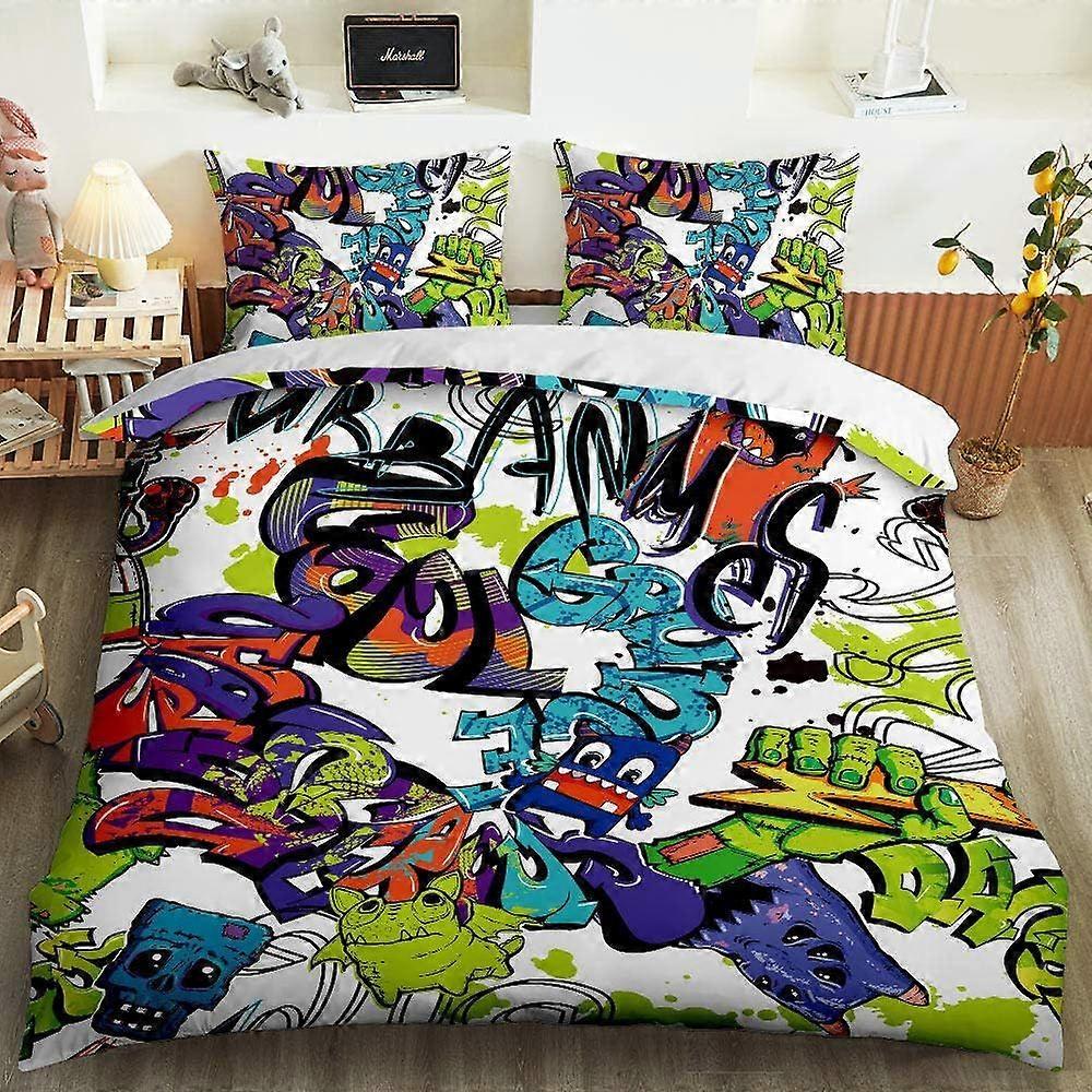d70 Single Duvet Cover Cartoon Colorful Graffiti Letters 3D Printed Quilt Cover With Zipper Closure Soft Microfiber Bedding Set +2 Pillowcases-Soft Hy