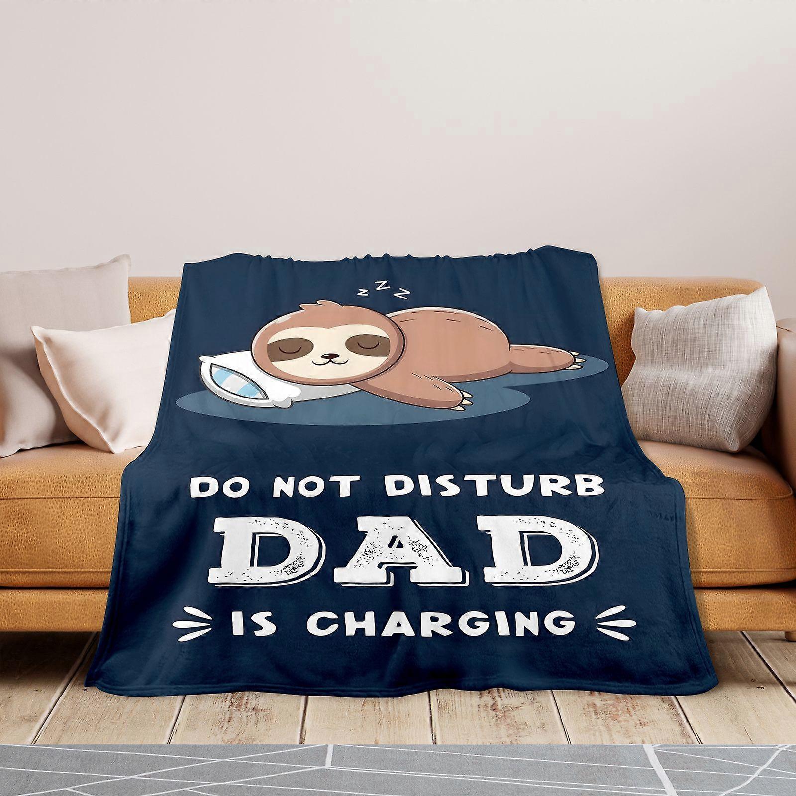 Dad-Themed Flannel Throw Blanket - Super Soft 280gsm Cozy Gift with "Do Not Disturb Dad Charging" Sloth Design, Machine -qazxc74