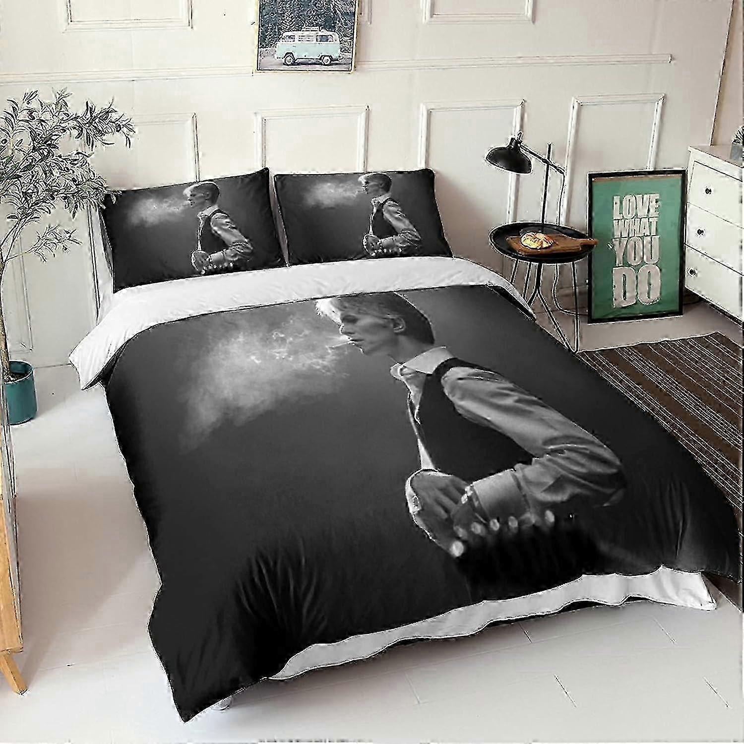 David Bowie Rock 'n' Roll Bedding Set with Pillowcases, Singer Duvet Cover with Zipper Closure, Soft Microfiber King 135*200 CM
