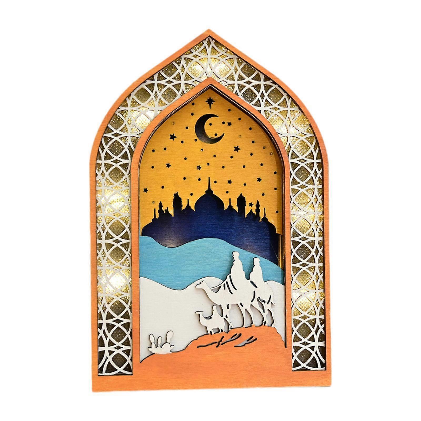 Wooden Ramadan Decoration Decorative 4.72x0.98x7.09inch Luminous Table Decor