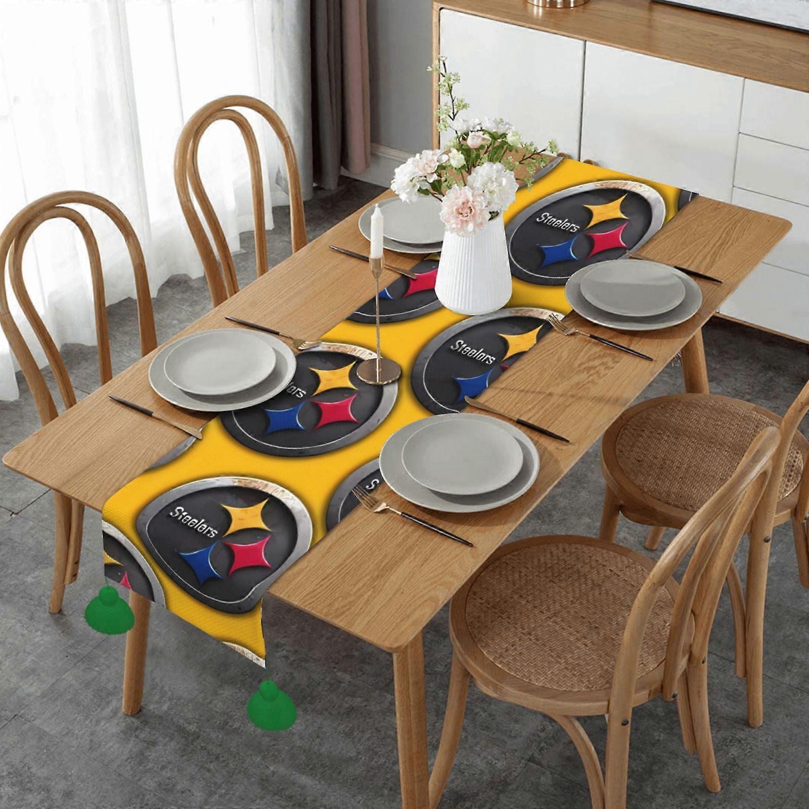 Steelers Christmas Table Decor with Tassels, Compatible with Xmas Holiday Kitchen Dining Decoration for Indoor Outdoor Home Party