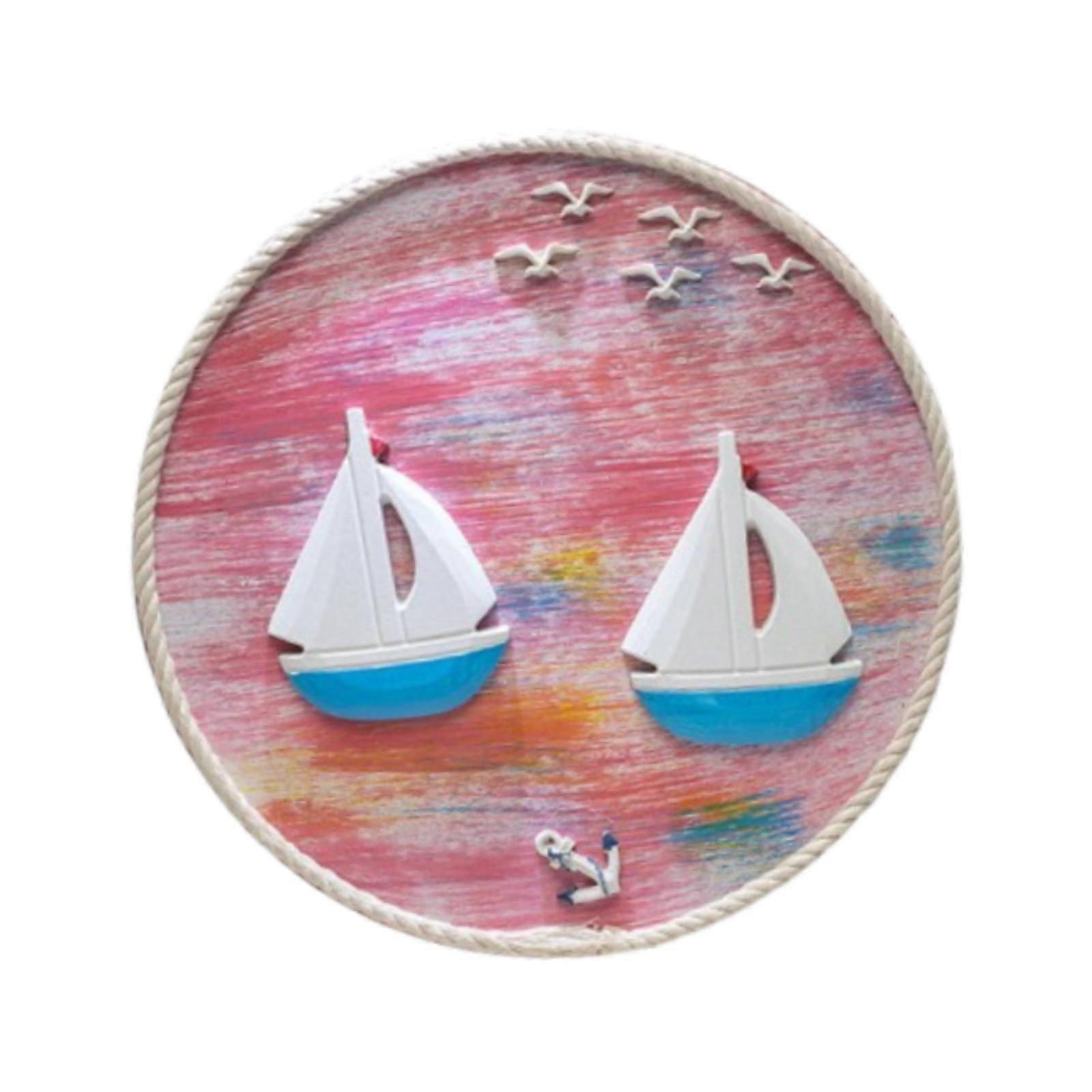 Ocean Theme Round Hanging Decor Gift for Kids Room Living Room Home Sailboat