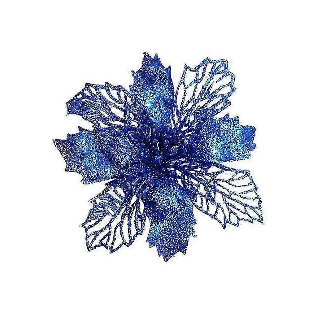 Blue Christmas Decorations for Tree with 10Pcs Simulation Flowers