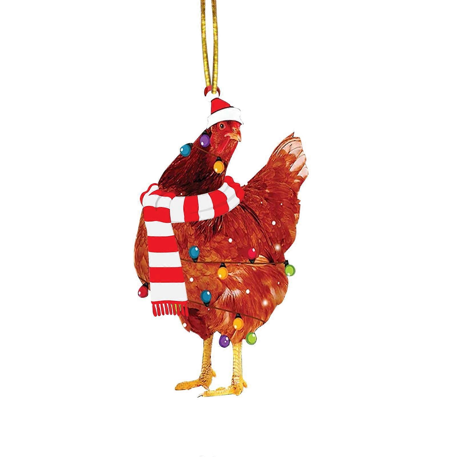 Generic Christmas Chicken Acrylic Decorations Christmas Tree Decorations with Christmas Scarf Chicken Christmas Decorations Pendant Clearance