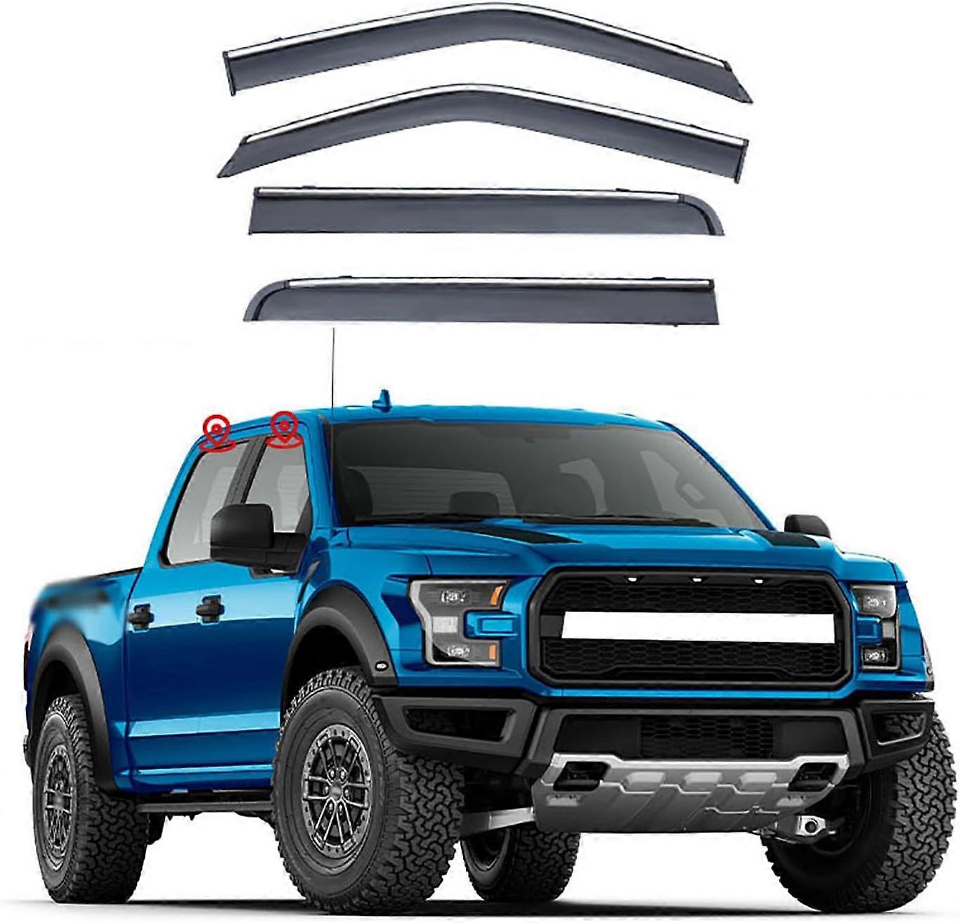 Stainless Steel Car Wind Deflectors Window Visor Rain Guard Vent Sun Shade Deflector, Compatible with Ford Raptor F150,2009-2014 (no Trim)