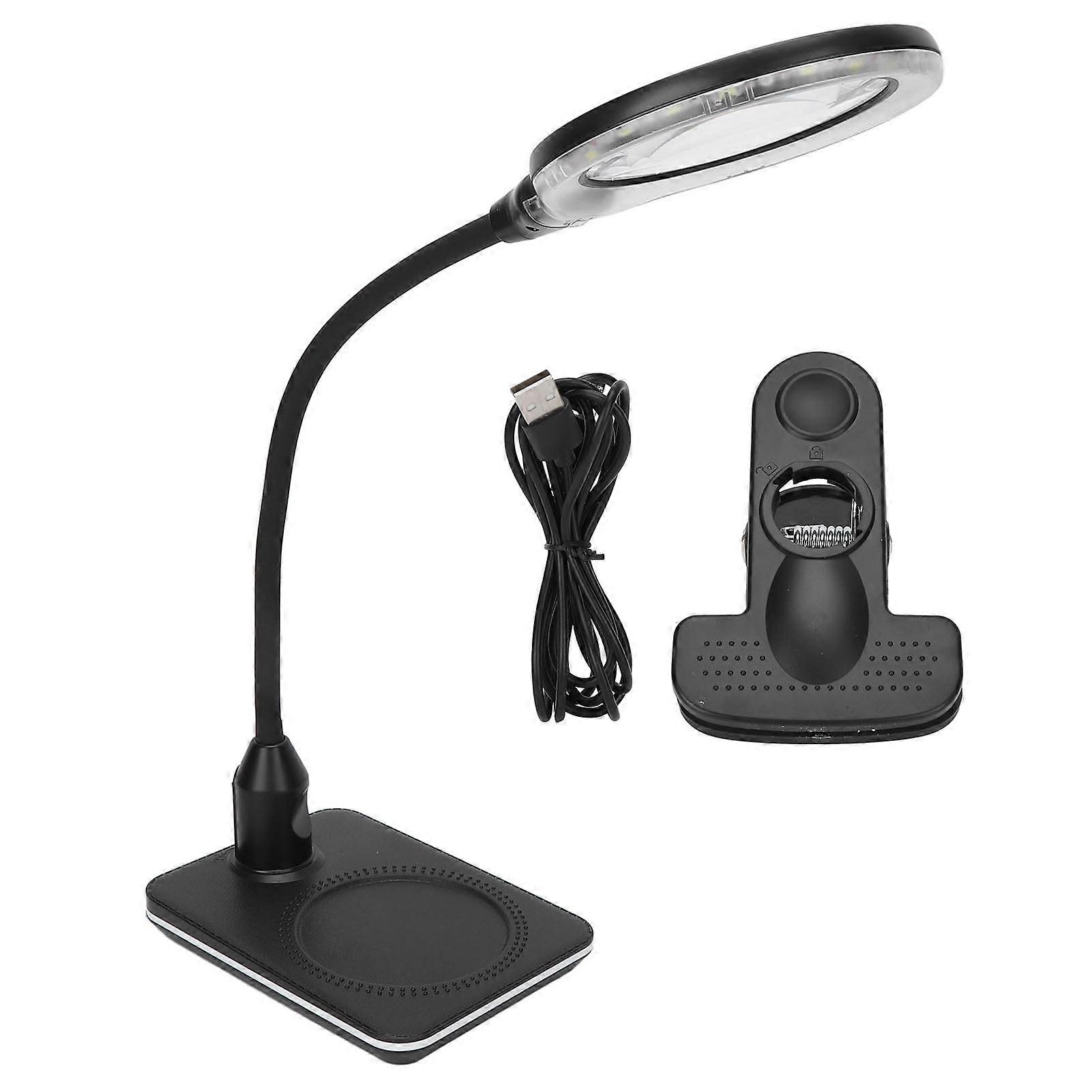 Dekaim Magnifying Lamp Holder, Magnifying Lamp 3X Primary 10X Secondary Clip On Soft LED USB Port Adjustable Gooseneck Magnifier with Light
