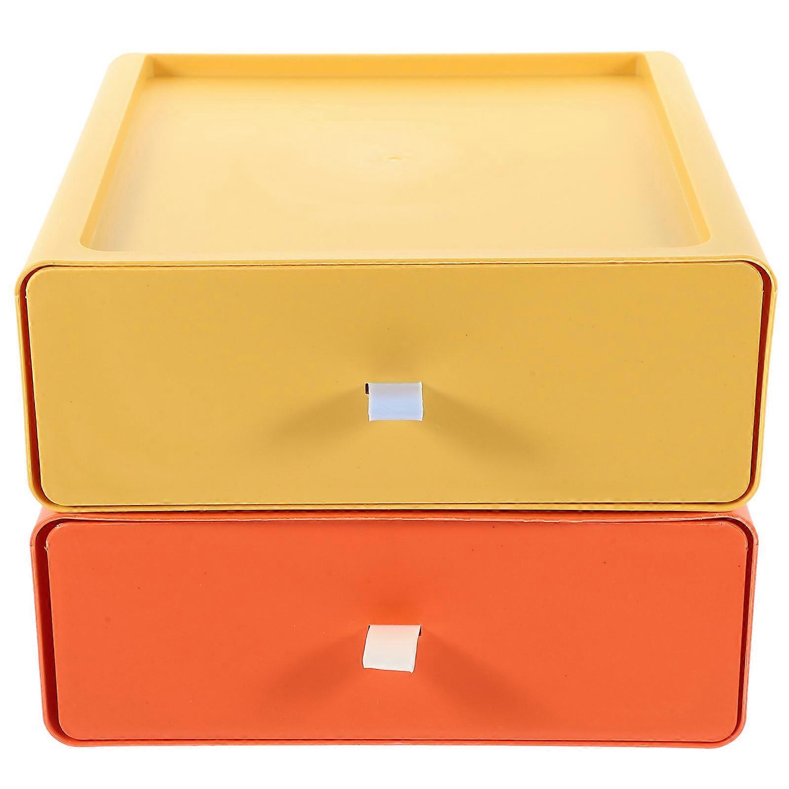 Desk Storage Organiser 2Pcs Rectangular Tabletop Cosmetics Storage Box Office School Home Assorted Color Use