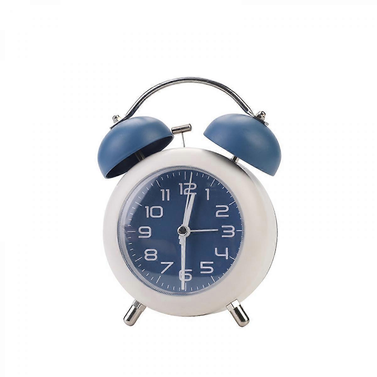 [Non-Ticking 4" Twin Bell Alarm Clock - Metal Frame 3D Dial with Backlight Function - Desk Table Clock for Home & Office - Blue
