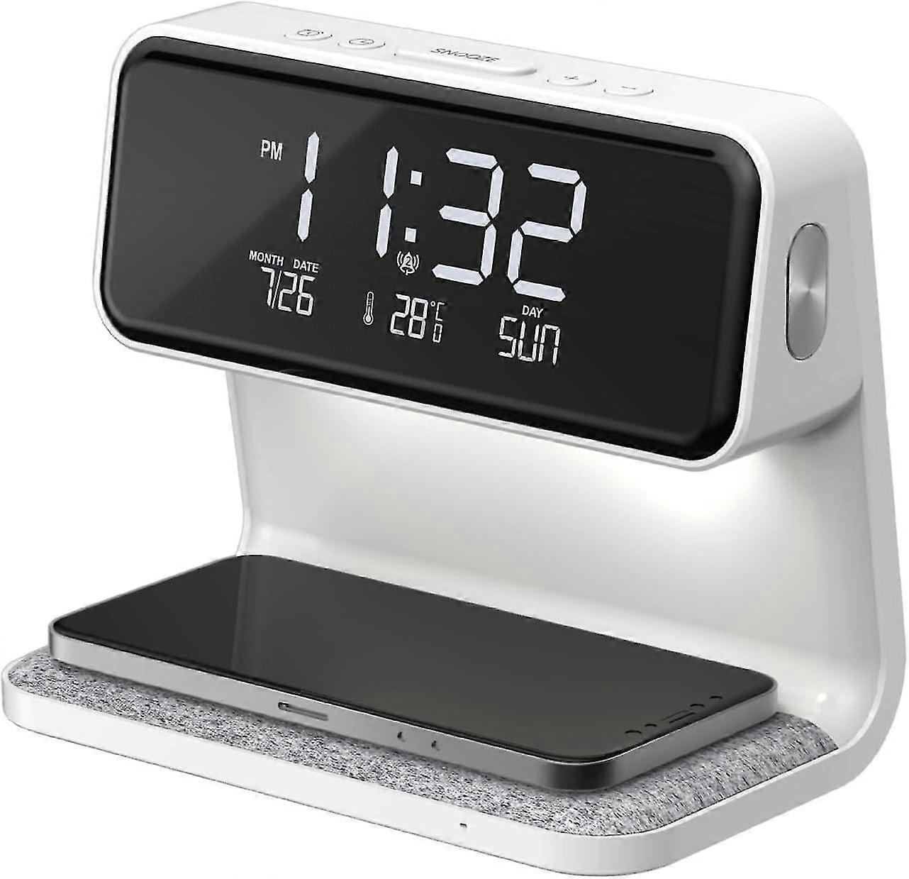 Wireless Charging Alarm Clock, Bedside Lamp With 3 Brightness Levels And Digital Snooze Alarm Clock For Bedroom Decoration