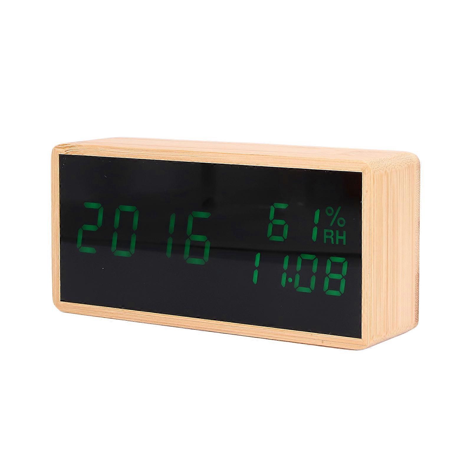LED Digital Bamboo Alarm Clock with Temperature & Humidity Display