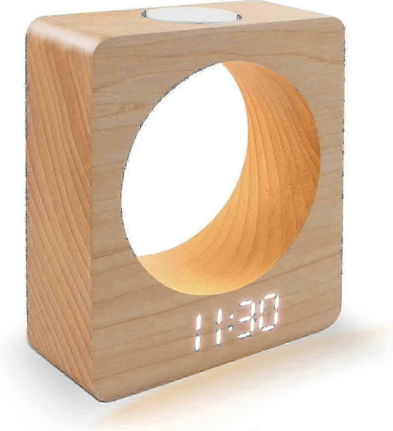 Digital Wooden Alarm Clock with 3 Adjustable Brightness Levels, 3 Custom Alarms & Night Light for Bedroom, Desk or Kids Room