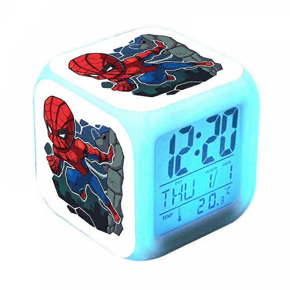HANNTAOO Digital Alarm Clock for Kids, Spider-Man LED Clock with Thermometer, Night Light, 7 Color Changing - Gift for Boys Girls