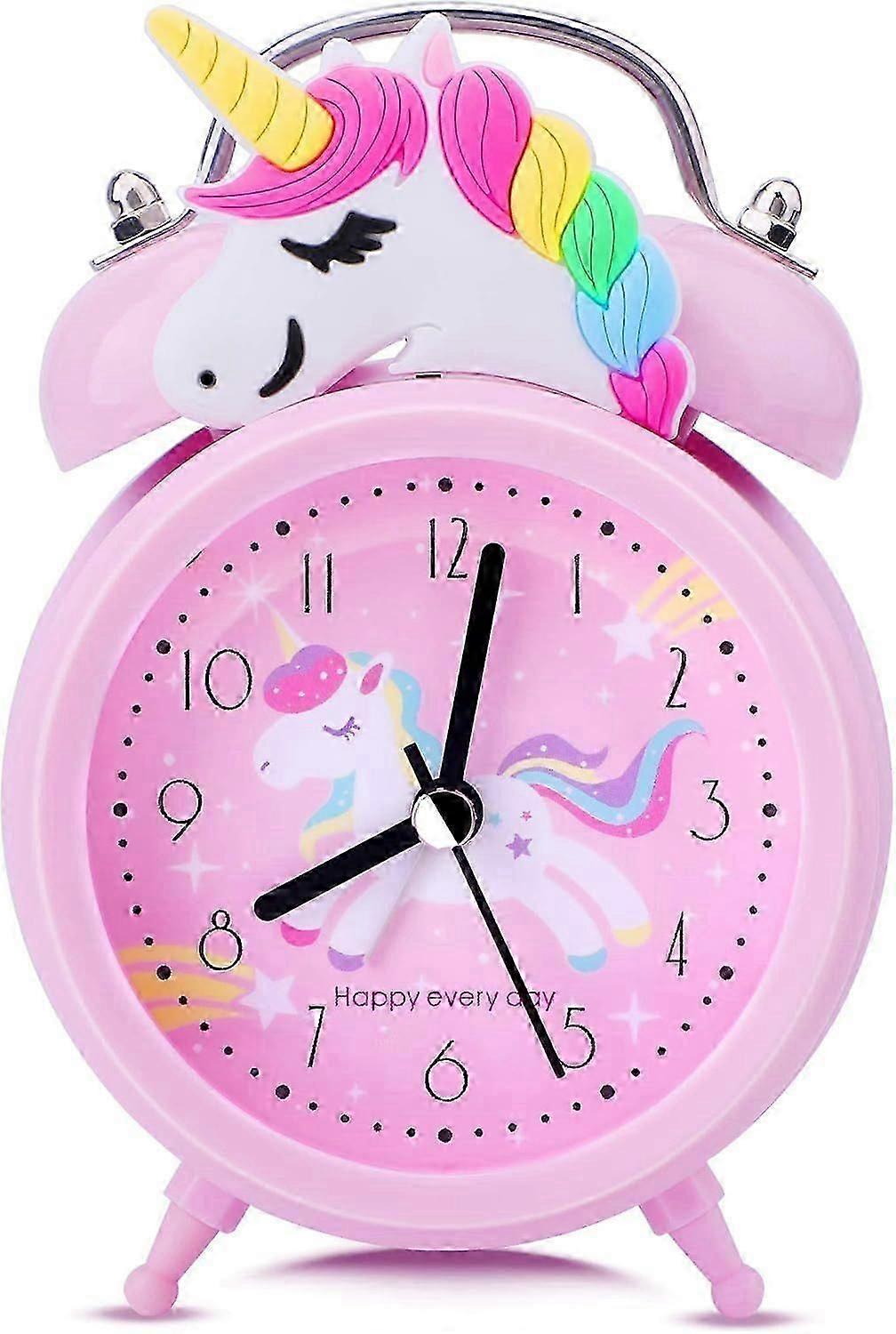 Silent Bedside Alarm Clock Battery Operated,Non-Ticking Pink Unicorn Clock compatible Girls Bedroom Desk,Classic Loud Twin Bell Clock with Backlight