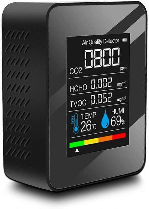Air Quality Detector Multifunctional Carbon Dioxide CO2 Tester TVOC HCHO Value Electricity Quantity Temperature Humidity Display Functionblack