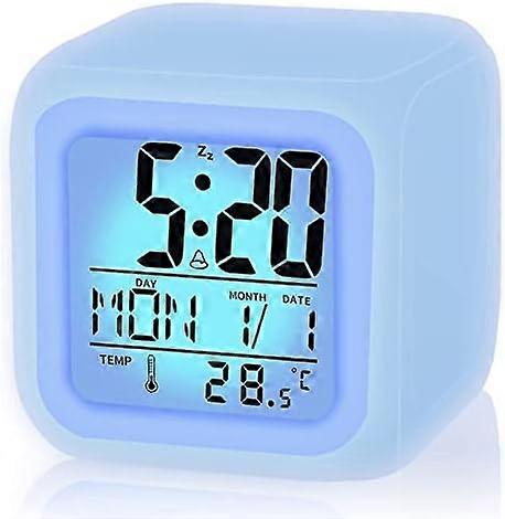 Digital Alarm Clock for Kids, Kids Alarm Clock with 7 LED Color Changing Night Light, Alarm Clocks Bedside with Temperature, Calendar, Snooze, Battery