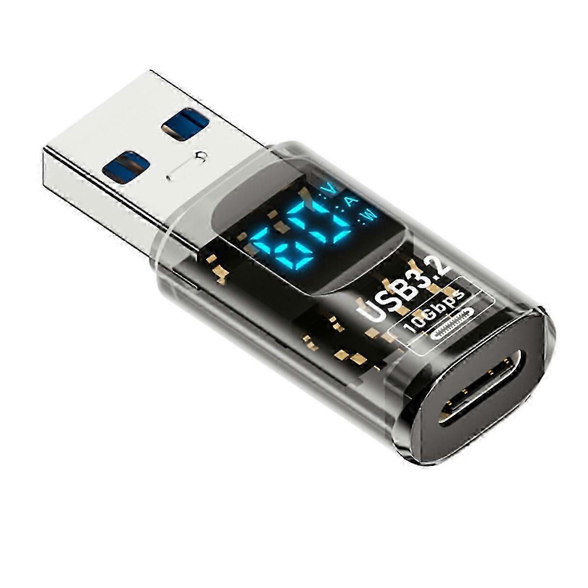 Digital LED Display USB 3.2 Adapter with 36-60W Power and 10Gbps Speed, USB-A to Type-C Converter for UK Laptops