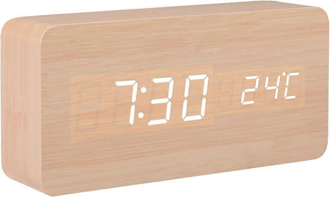 Digital Wood Alarm Clock, Bedside Silent Wooden Clock with Multiple Alarm and 5 Level Brightness