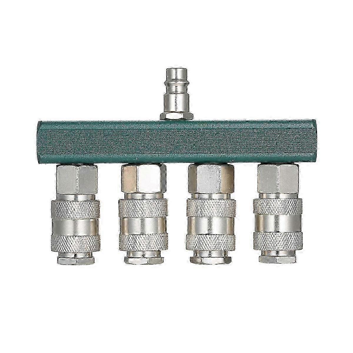 Air Compressor Splitter with 4 Couplers & 1/4Inch NPT Plug 1/4Inch NPT Air Fitting Coupler 4-Way Straight Air Manifold