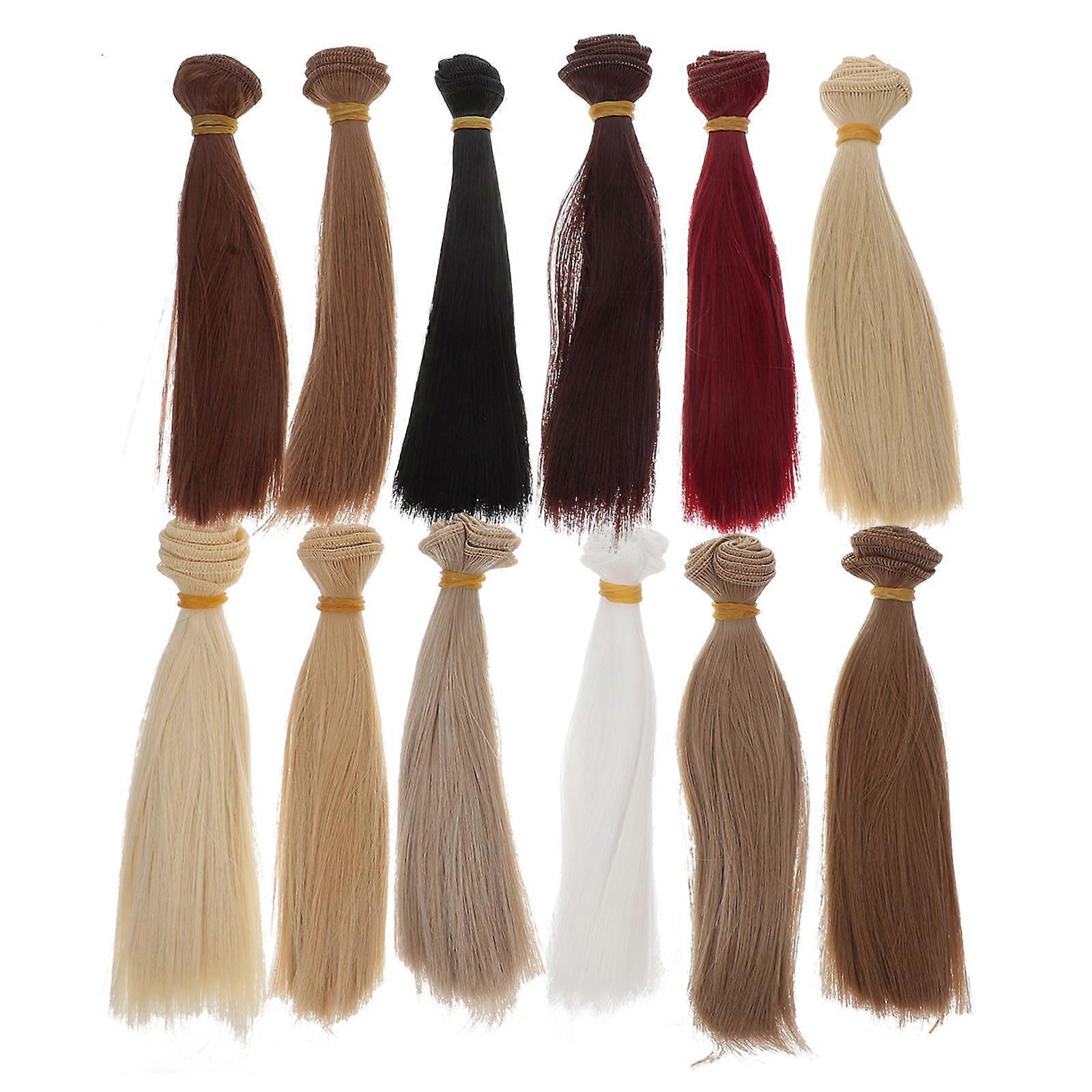 DIY Making Heat Resistant Straight Hair Wig Doll Wigs Weft Extensions Assorted Color 100x15cm High Temperature Silk 12Pcs