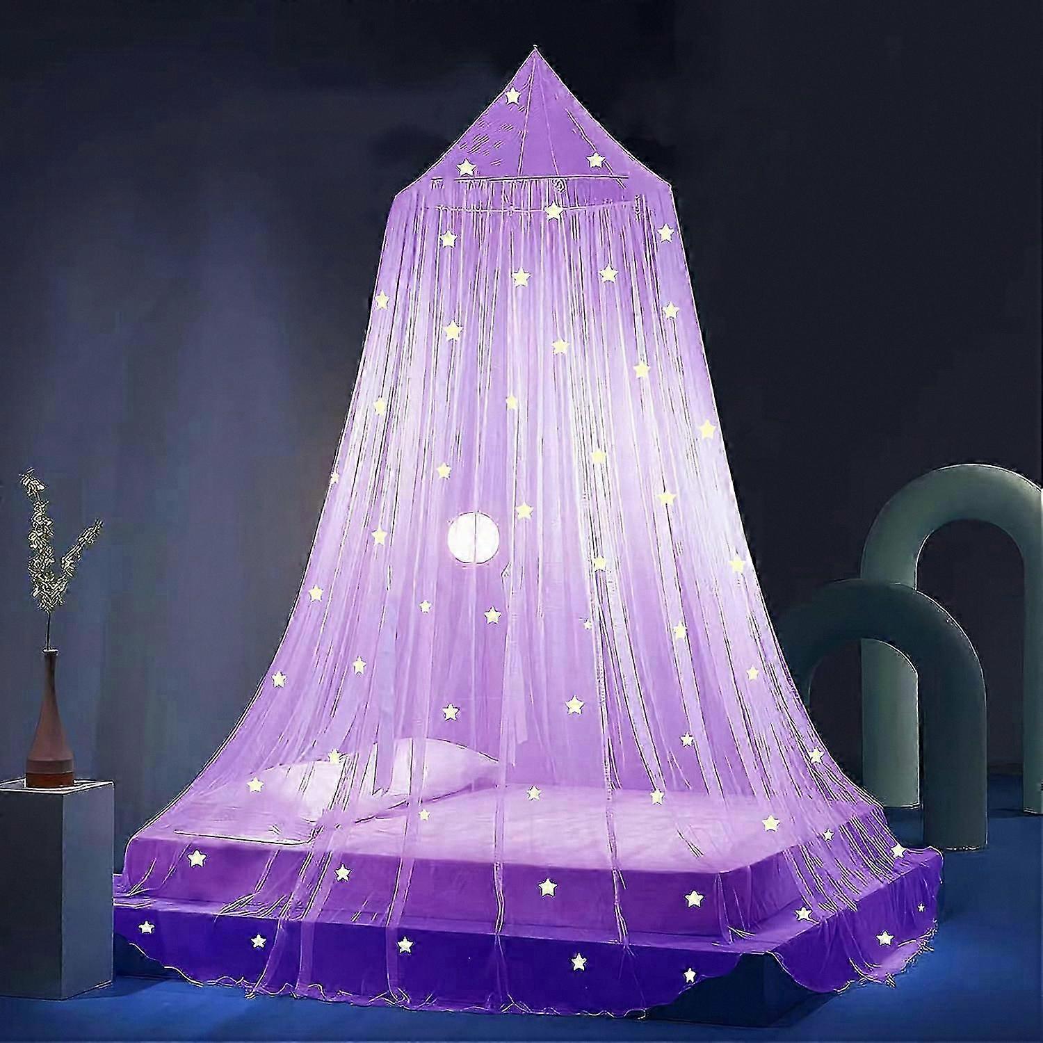 Glow-in-The-Dark Stars Bed Canopy for Girls, Purple Princess Room Decor with Mosquito Netting
