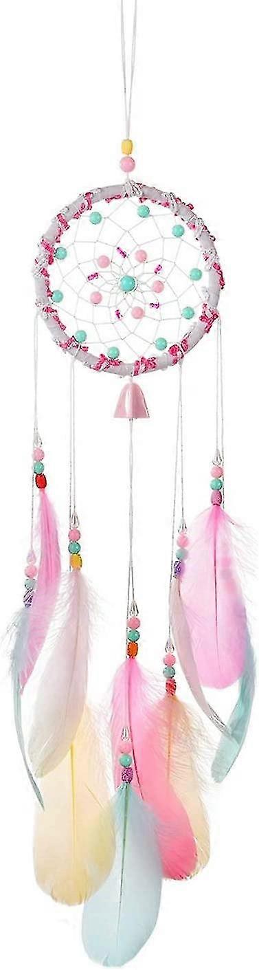 Pink , hand -woven from metal circles, pearls, feathers, high -quality yarns, each piece is unique Dimensions: diameter 11 cm, total length approx. 55 cm Dream catcher catches bad dreams, nightmares go through holes and come from windows, good dreams are caught on the net and slide like feathers on sleeping people. This dream catcher has a unique style and is perfect for hanging on living rooms, rooms, cars or windows, the perfect decoration for the children's roof Beautiful gifts or decorations, suitable for your family and friends. If you are accompanied by beautiful dreams every day, you will be happy to go hand in hand