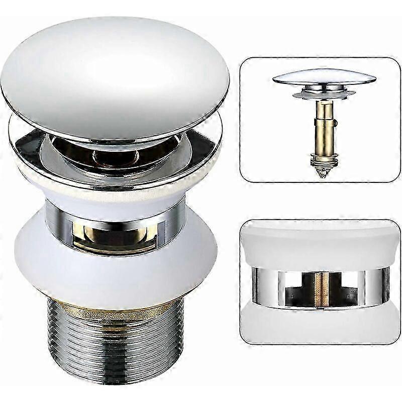 Universal Sink Drain with Overflow Pop-up Automatic Push Open Click Clack for Bathroom 1-1/4 "Chrome Brass