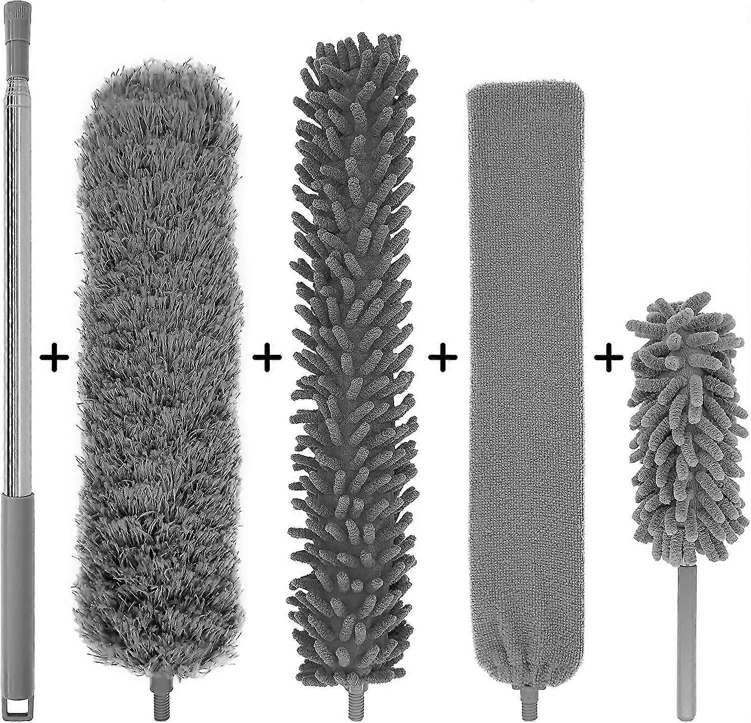 Microfiber Duster With Extension Pole (30-100 Inches) Set, 3 Cleaning Head And 1 Mini-duster (10-31 Inches). Cleaning For Furniture, Ceiling Fan, Cobw