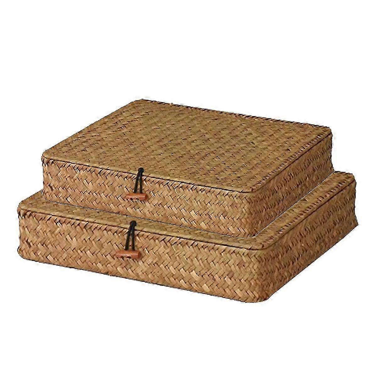 e Pack Of 2 Rectangular Rattan Storage Baskets,Shelf Baskets With Lids