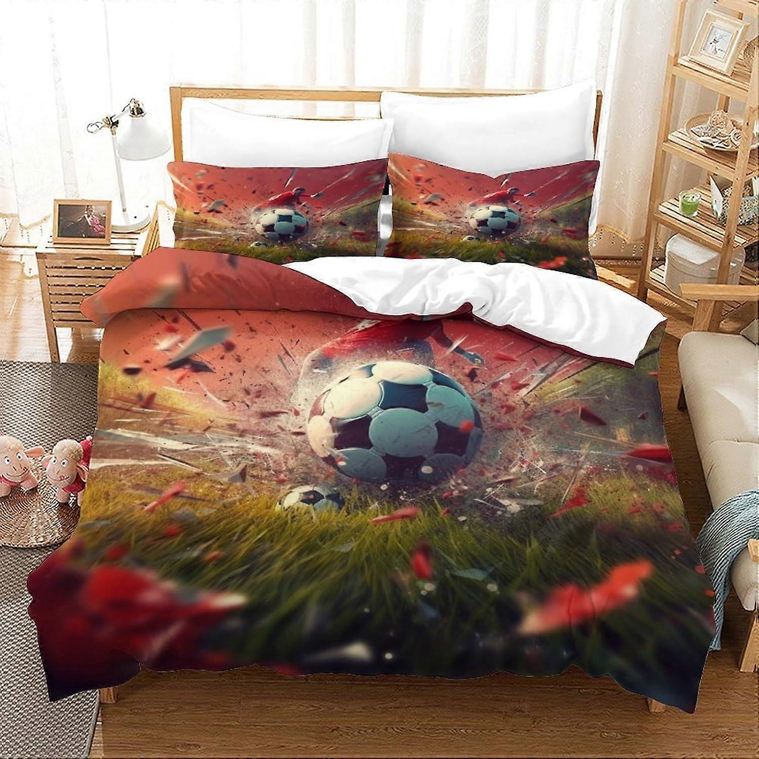 e124 Football Duvet Cover Set 3 PCS Hotel Quality Quilt Cover Bedding Bed Covers with Pillowcases with Zipper Closure Hypoallergenic Soft Breathable M