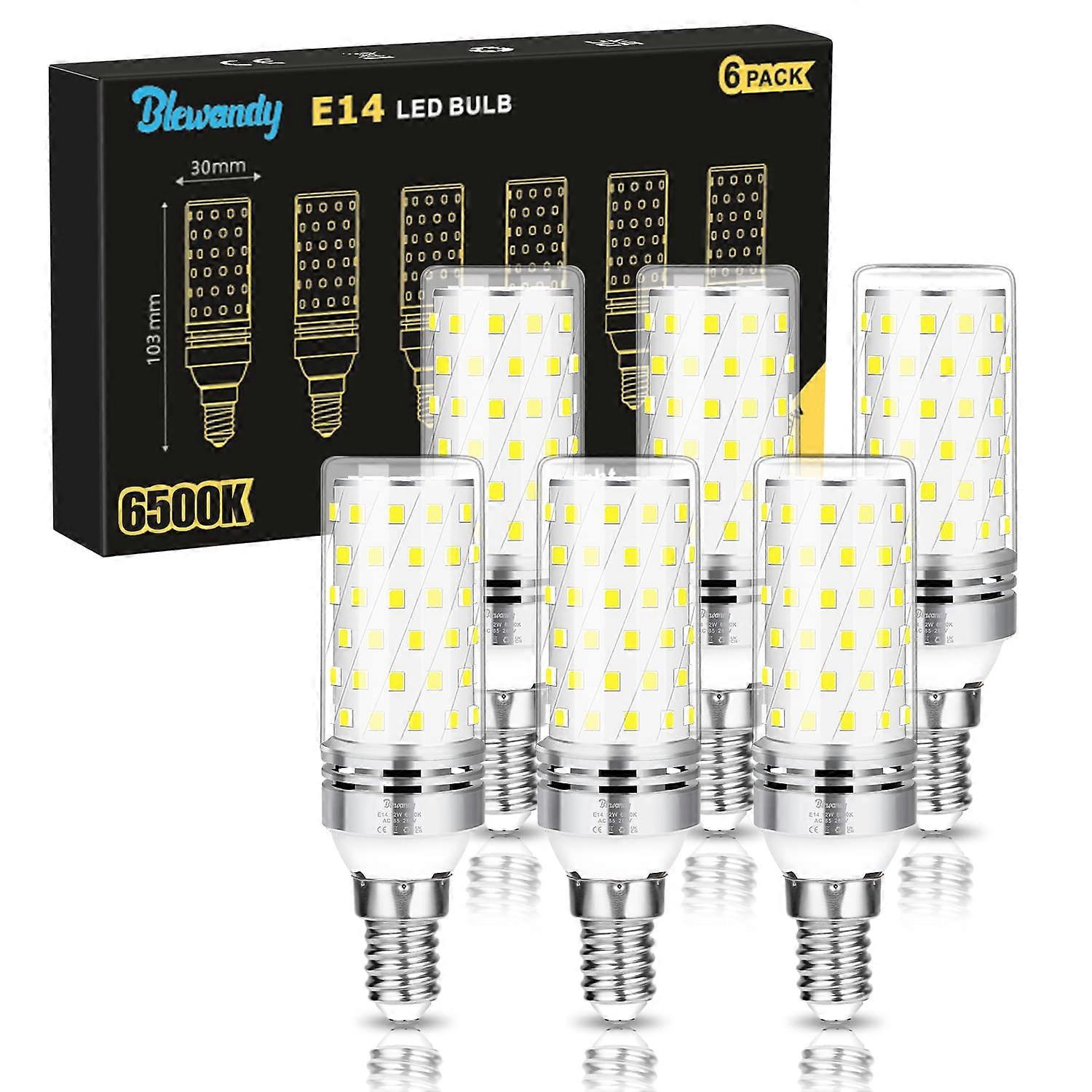 E14 LED bulb Cool white light, 6500K, 12W equivalent to 100W halogen, 1200LM, Non-dimmable, Flicker-free, 6-pack [Energy class F]