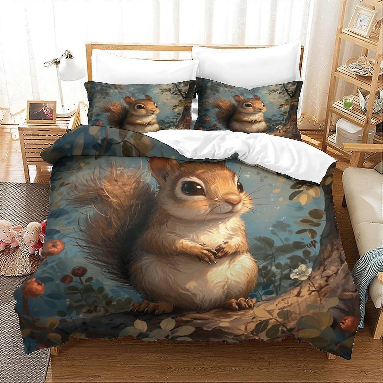 e22 Squirrel Duvet Cover Set 3 PCS Hotel Quality Quilt Cover Bed Sets Bed Covers with Pillowcases with Zipper Closure Hypoallergenic Soft Breathable M
