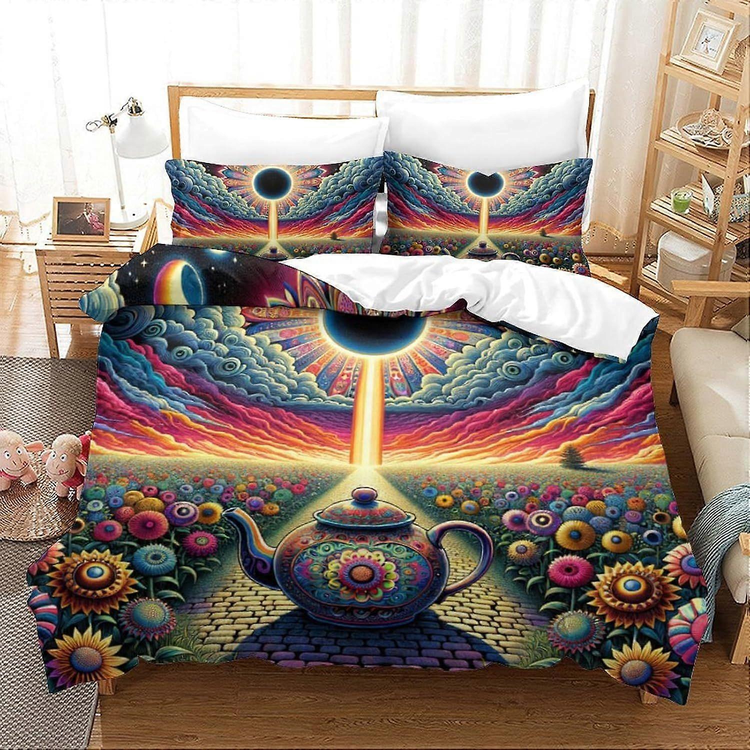 e353 Teapot Duvet Cover Set Bedding Set 3D Microfiber Comforter Cover with Pillow Shams, 2 Piece Set, Zipper Quilt Cover King n353