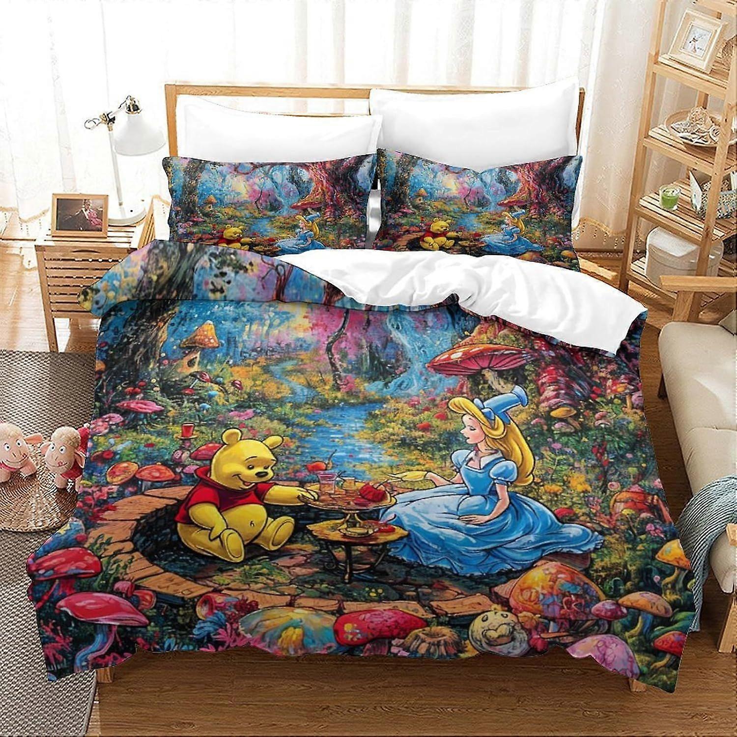 e421 Alice in Wonderland Duvet Cover Set 3 PCS Hotel Quality Quilt Cover Bedding Set Bed Covers with Pillowcases with Zipper Closure Hypoallergenic So