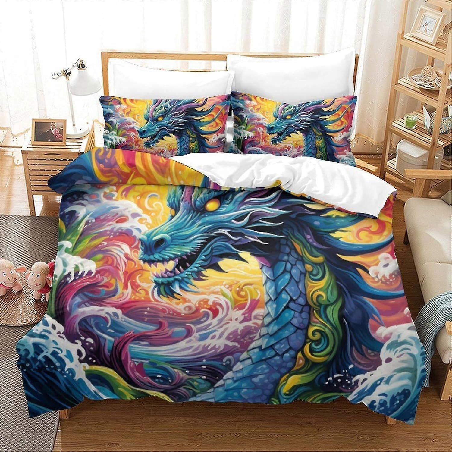 e445 3D Printed Duvet Cover Set Dragon Microfiber Comforter Cover with Zipper Closure Home Bedding Cover Sets for Boys Girls Super King n445