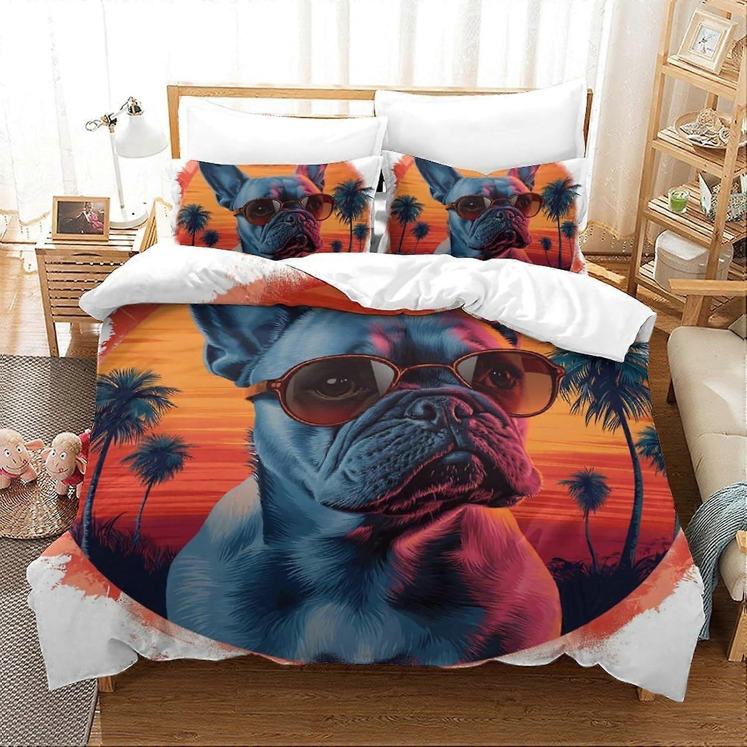 e454 French Bulldog Duvet Cover Set 3D Printing With Zipper Comforter Cover With Pillow Cases Home Bedding Cover Sets for Kids Boys Girls Aldult Doubl