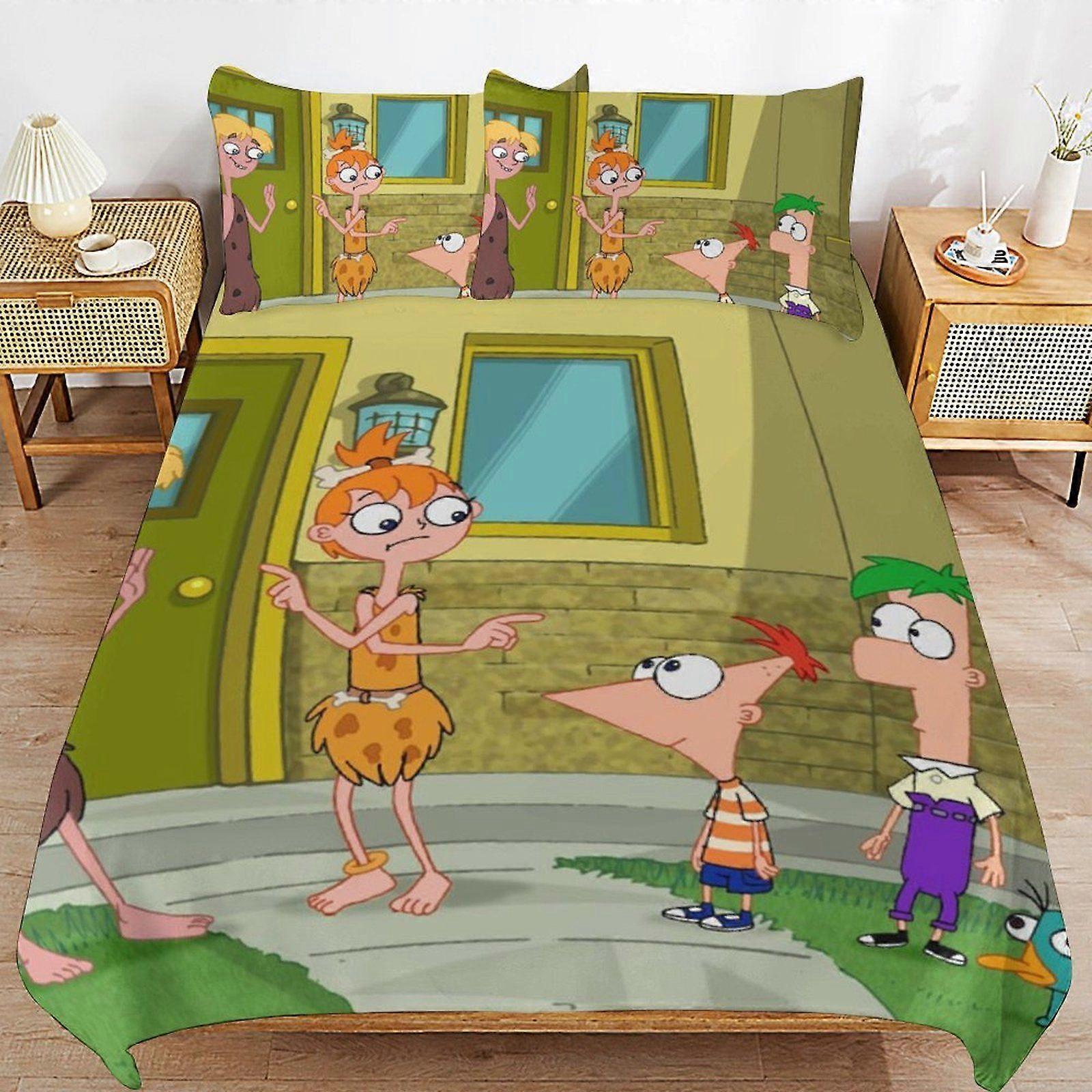 e457 Phineas and Ferb Long Lasting Comfort Durable Weave Smooth Touch Zipper Duvet Cover Sets for Bedroom Upgrade p457