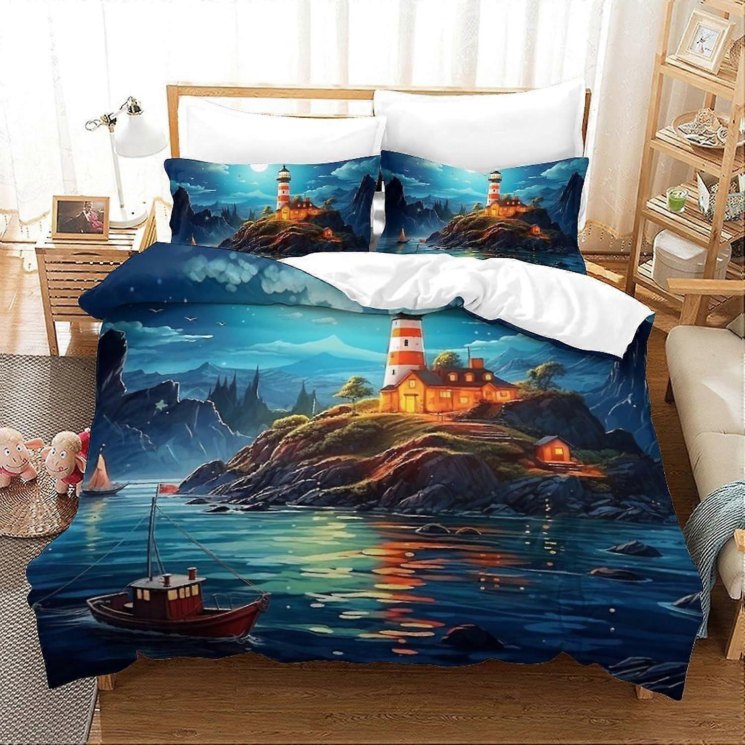e589 Lighthouse 3D Printed Duvet Cover Set 3 Pieces Bedding Set Soft Easy Care with Zipper ClosurePillowcases for Teens And Adults Double n589