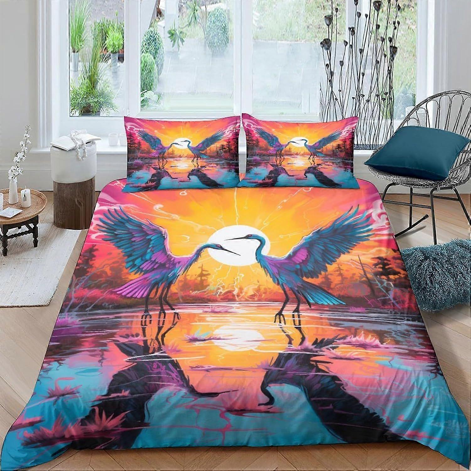 e66 Danding Crane 3D Printed Bedding Sets Duvet Coverfor Kid Teens Boys And Girls Man Quilt Cover 3 Pcs With Pillow Cases Easy Care Anti-Allergic Soft