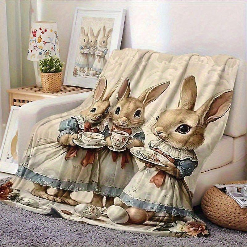Easter Bunny & Egg Pattern Soft Flannel Blanket - Warm, Cozy Throw with Charming Rabbit and Egg Design, Machine Washable-qazxc337