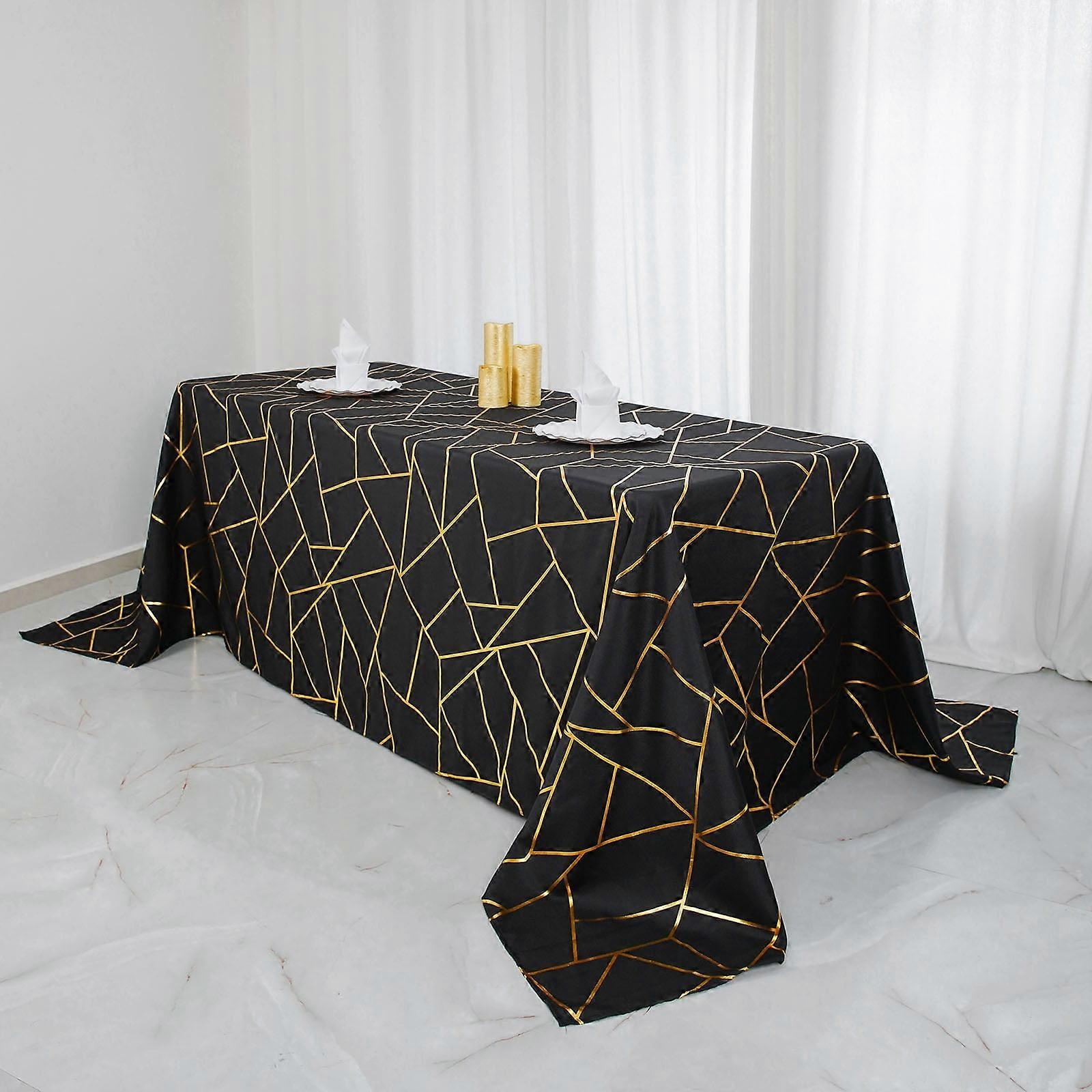 Efavormart 90"x132" Black Rectangle Polyester Tablecloth With Gold Foil Geometric Pattern