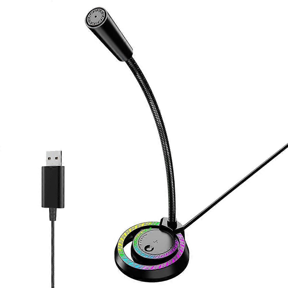 RGB Lighting Effect Computer Desktop Microphone 1. Material: ABS, metal, electronic components2. Pickup size: 6 x 2.7mm3. Pickup rated voltage: 2V4. Pickup sensitivity: -40???+-3???dB5. Frequency response range: 50Hz-10KHz6. Input voltage: 5V7. Test current: 0.2-0.4MA8. Interface: USB9. Signal to noise ratio: 50dB10. The base is equipped with a switch, one-key control, easy to use11. Metal hose design, all-round angle adjustment12. Built-in high-resolution decoding chip to improve sound wave distortion13. Support 360-degree omnidirectional pickup, efficient pickup, and clear voice transmission14. The base is designed with weighted iron blocks, and the placement is more stable15. Metal hose design, all-round angle adjustment16. Product weight: 150 grams