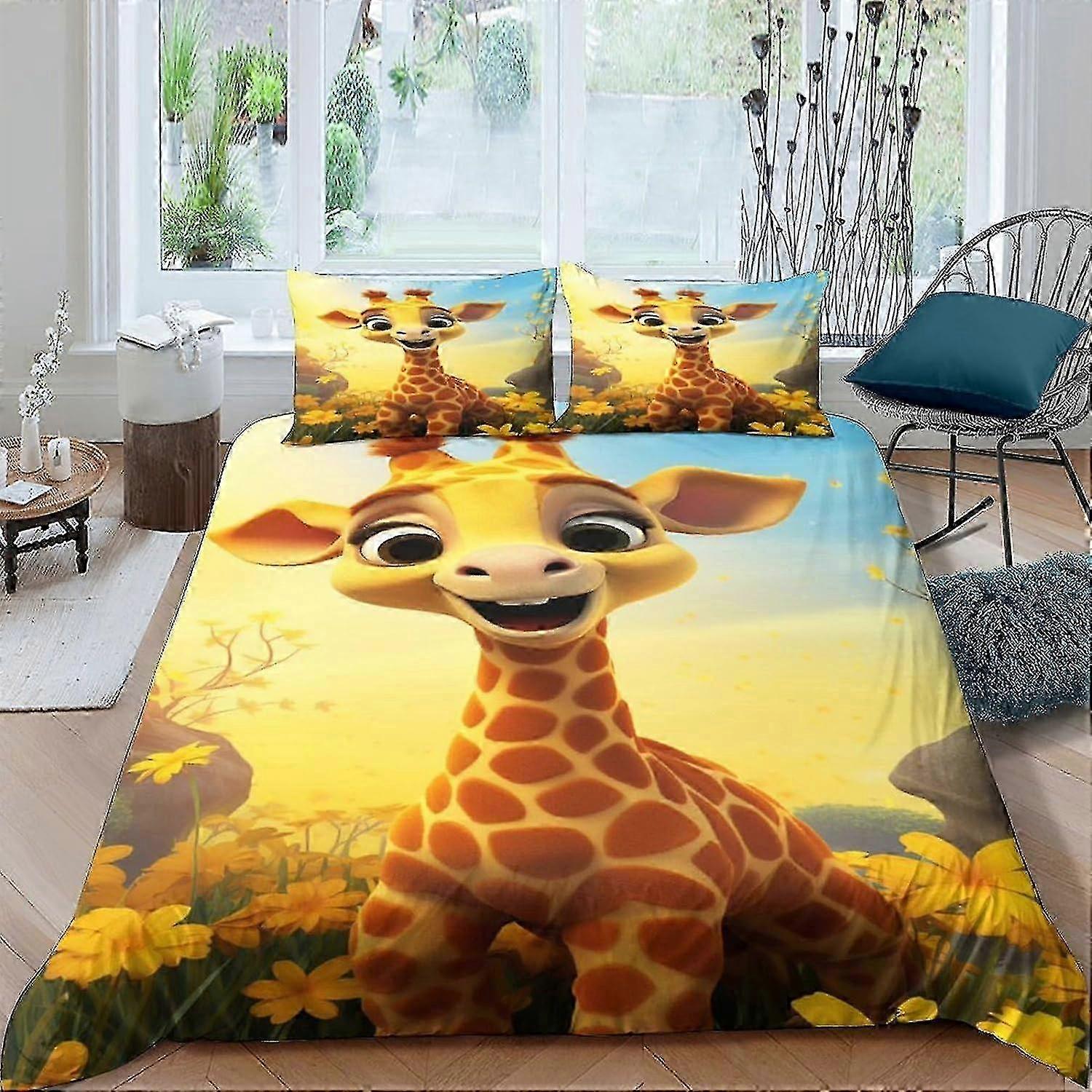 EKENOZ Giraffe Duvet Cover 3 Piece Set One-sided Bedding Set Soft Microfiber Quilt Cover with Zipper Closure for Bedding Decro Double