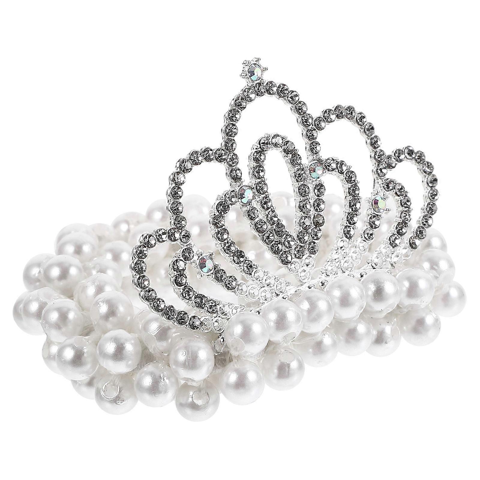 Pearl Crown Hair Tie for Girls with Elastic 3Pcs Silver Beaded Scrunchies