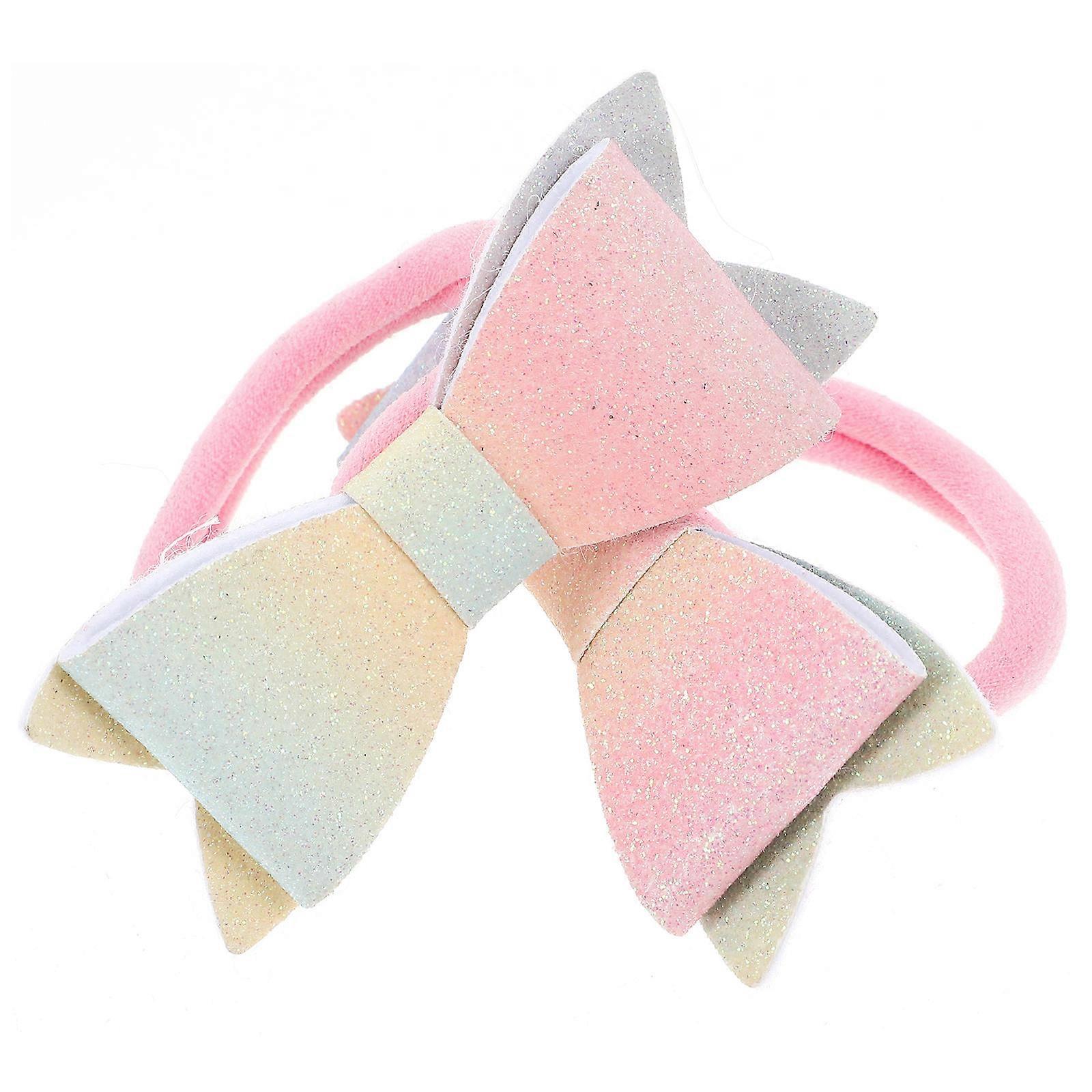 Elastic Ponytail Holder Hair Accessories With Bow Design Ideal For Young Children Assorted Color 2Pcs