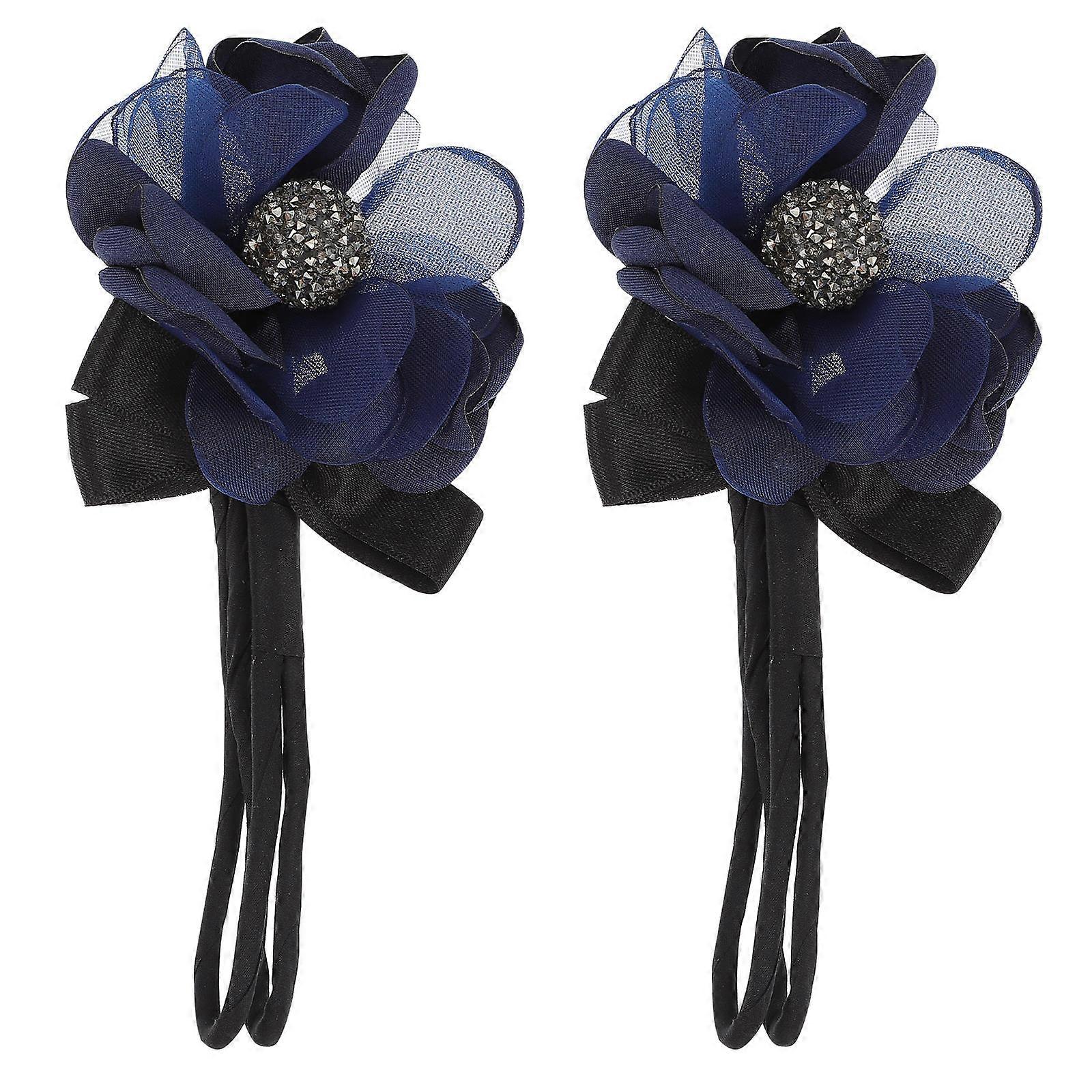 Flower Hair Ties Elastic Hair Band Hair Accessory for Women and Girls Dark Blue Fabric Hair Styling 2Pcs
