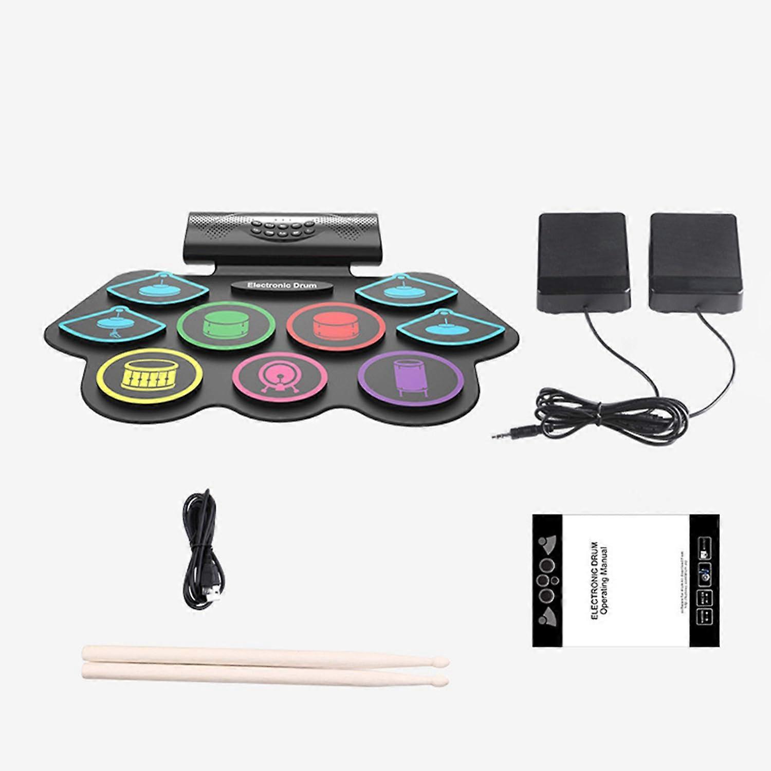 Electronic Drum Set with Bluetooth Audio Playback, ColorCoded Pads, Foldable Roll Up Design